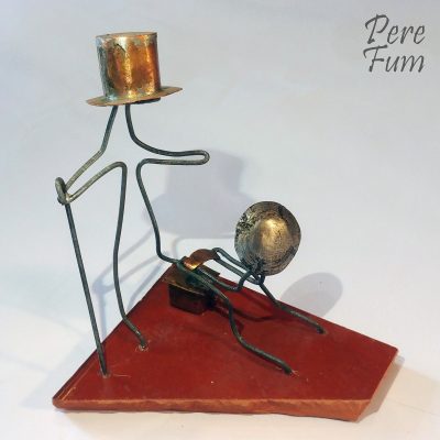 Les alicates, el tallacaps, les tenalles, el soldador d’estany, el martell, el trepant, el cargol de ferrer, el robí per tallar rajoles, el paper de vidre per repassar cantonades i les tisores de tallar xapa són algunes de les eines que Pere Fum empra per conjugar materials que, a priori, hom no espera que puguin combinar de manera tan singular.